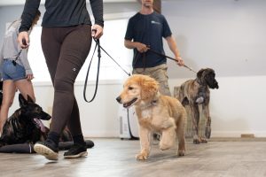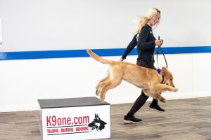 Leash Manners: This teaches dogs to work properly and confidently on a loose leash. Preventing unwanted pulling and jerking is often a concern of many dog owners. Teaching dogs not to jump up on people is also covered during this training phase.